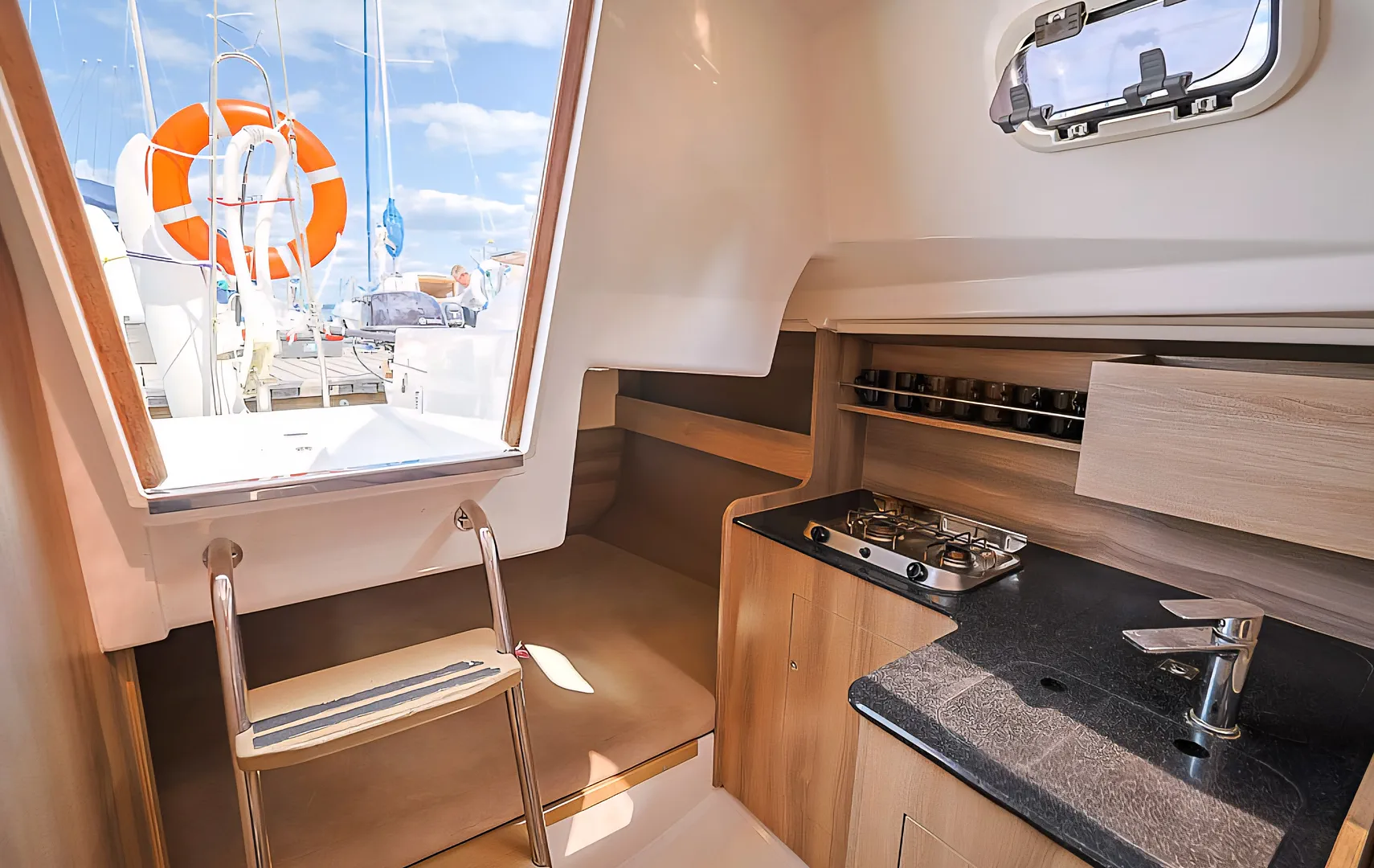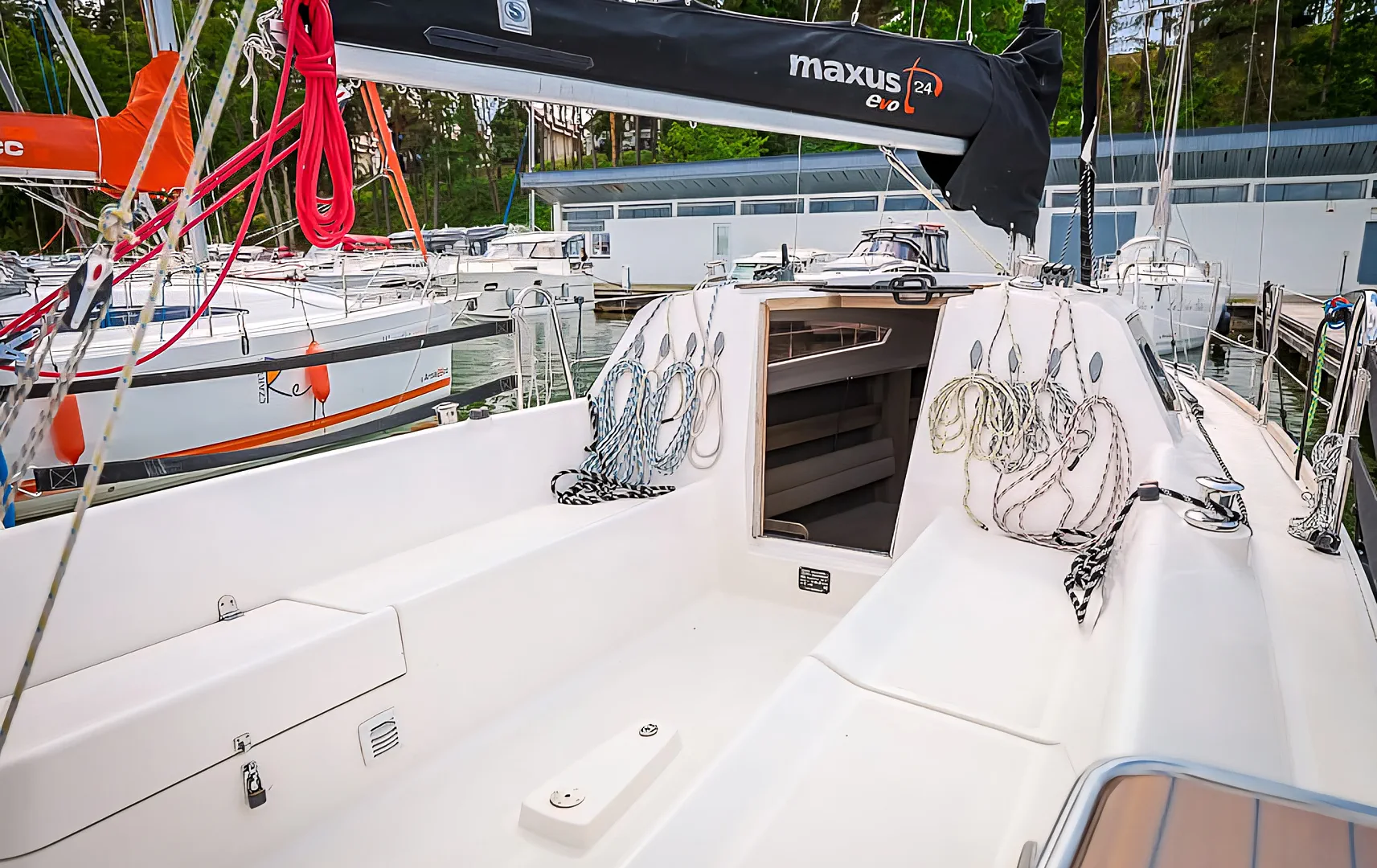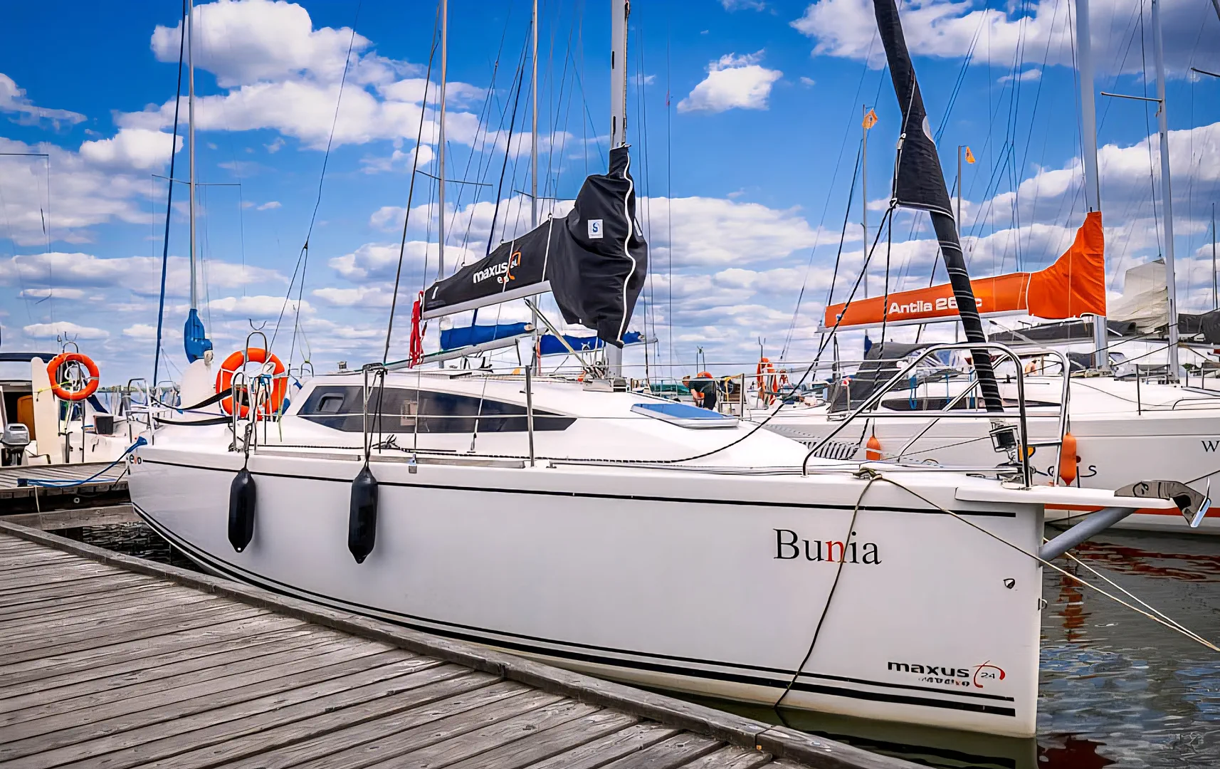 Maxus 24 Evo Bunia to idealna propozycja dla osób szukających nowoczesnego jachtu w Giżycku, który łączy świetne parametry nautyczne z komfortem. Jacht stacjonuje w sercu Mazur - w prestiżowym porcie Lowen Marina, co zapewnia doskonały start na każdy kierunek rejsu. Jako jednostka pod stałą opieką naszych fachowców, Bunia oferuje najwyższy standard techniczny, gwarantując bezpieczny i bezawaryjny czarter jachtu na Mazurach.