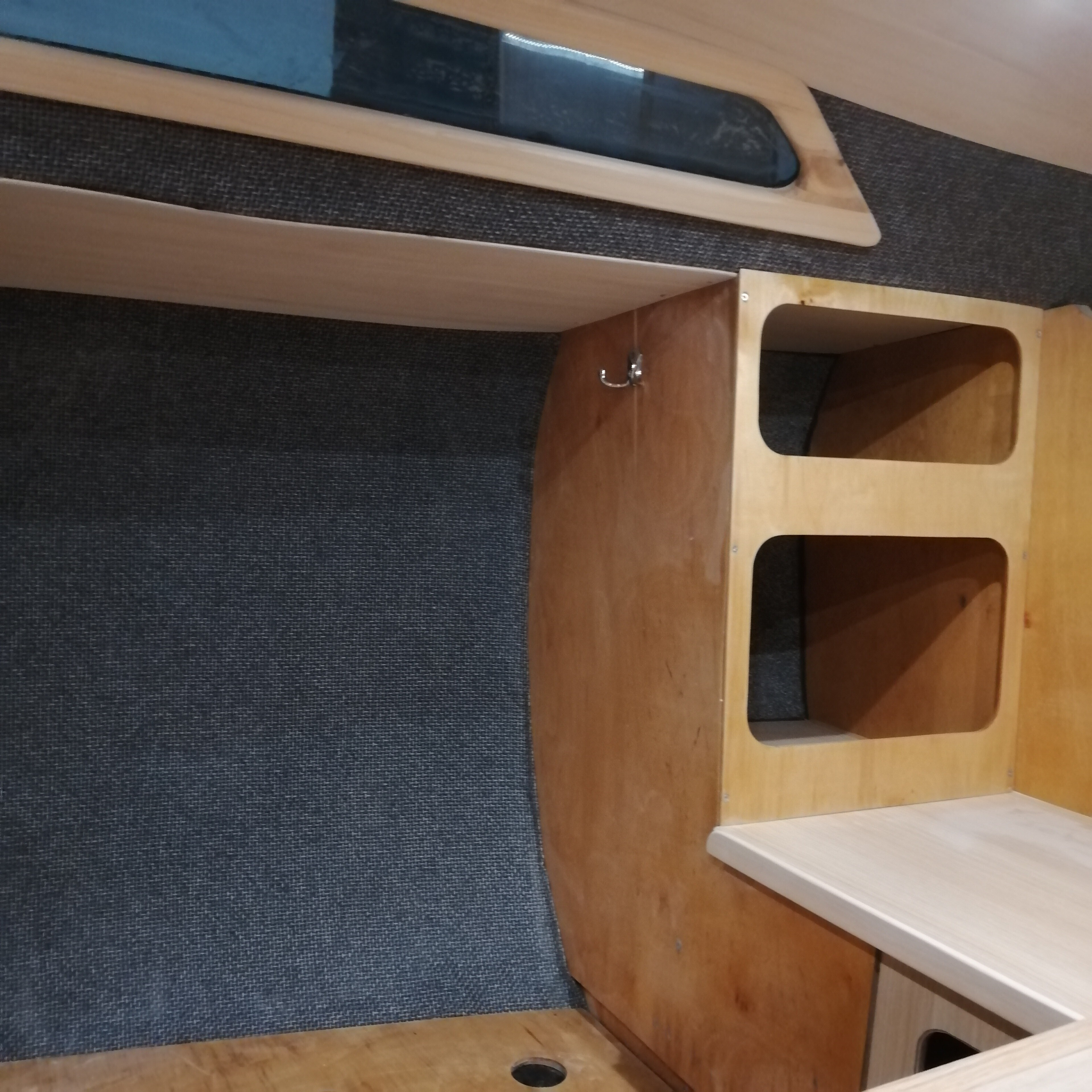 - Instalacja elektryczna 12V ( akumulator, ładowarka, fotowoltaika, oświetlenie wewnętrzne)